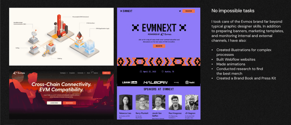 From Nov 2022 to May 2023 I was in charge of Evmos branding.